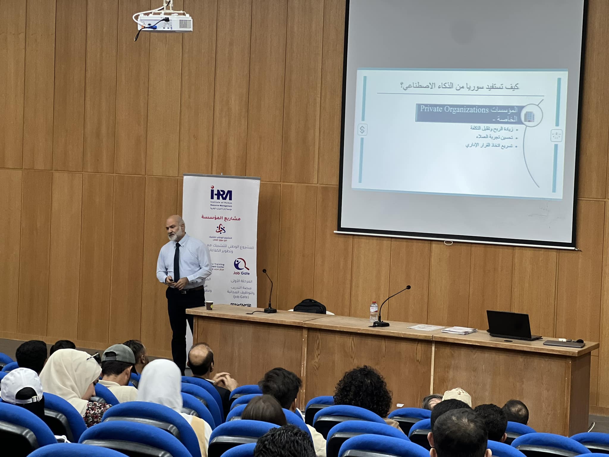 نظّمت مؤسسة ادارة الموارد البشرية وبالتعاون مع الجامعة السورية الخاصة ـ كلية العلوم الإدارية الورشة الرابعة والأخيرة من البرنامج التدريبي لبناء قدرات سوق العمل الريادية بعنوان: ” مهارات الذكاء الاصطناعي لمحترفي الأعمال والموارد البشرية في سوريا ما بعد رفع العقوبات”